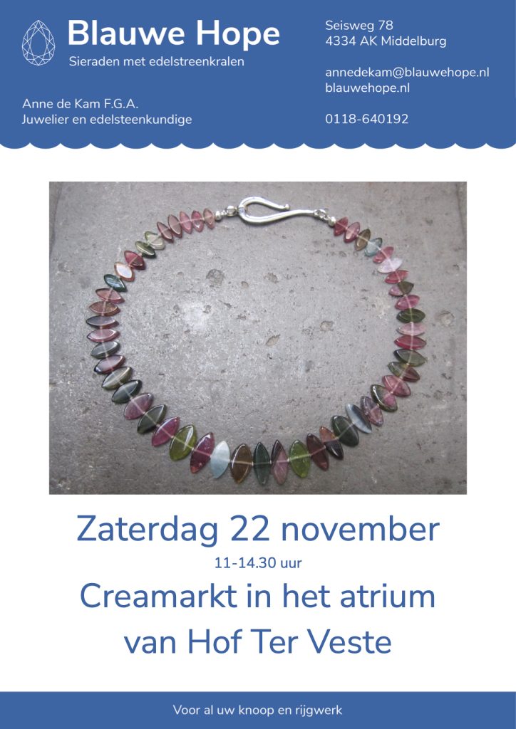 Tevens heb ik aan de hand van een elfje (dichtvorm) met woorden en materialen getoond waar Blauwe Hope inspiratie vindt voor het maken van sieraden met edelsteenkralen / natuurlijke materialen.